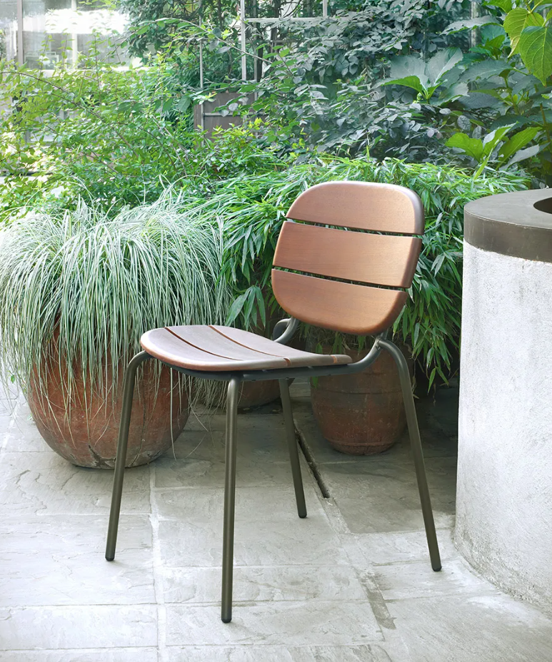 The chair version of the Si‑Si Wood collection combines the formal rigor of industrial design with the natural warmth of wood.