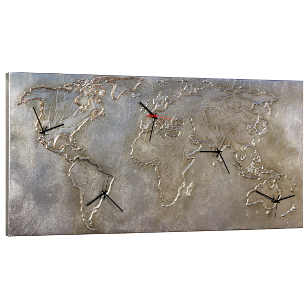 Hand-decorated canvas structure with five dials, relief material processing and silver leaf.
