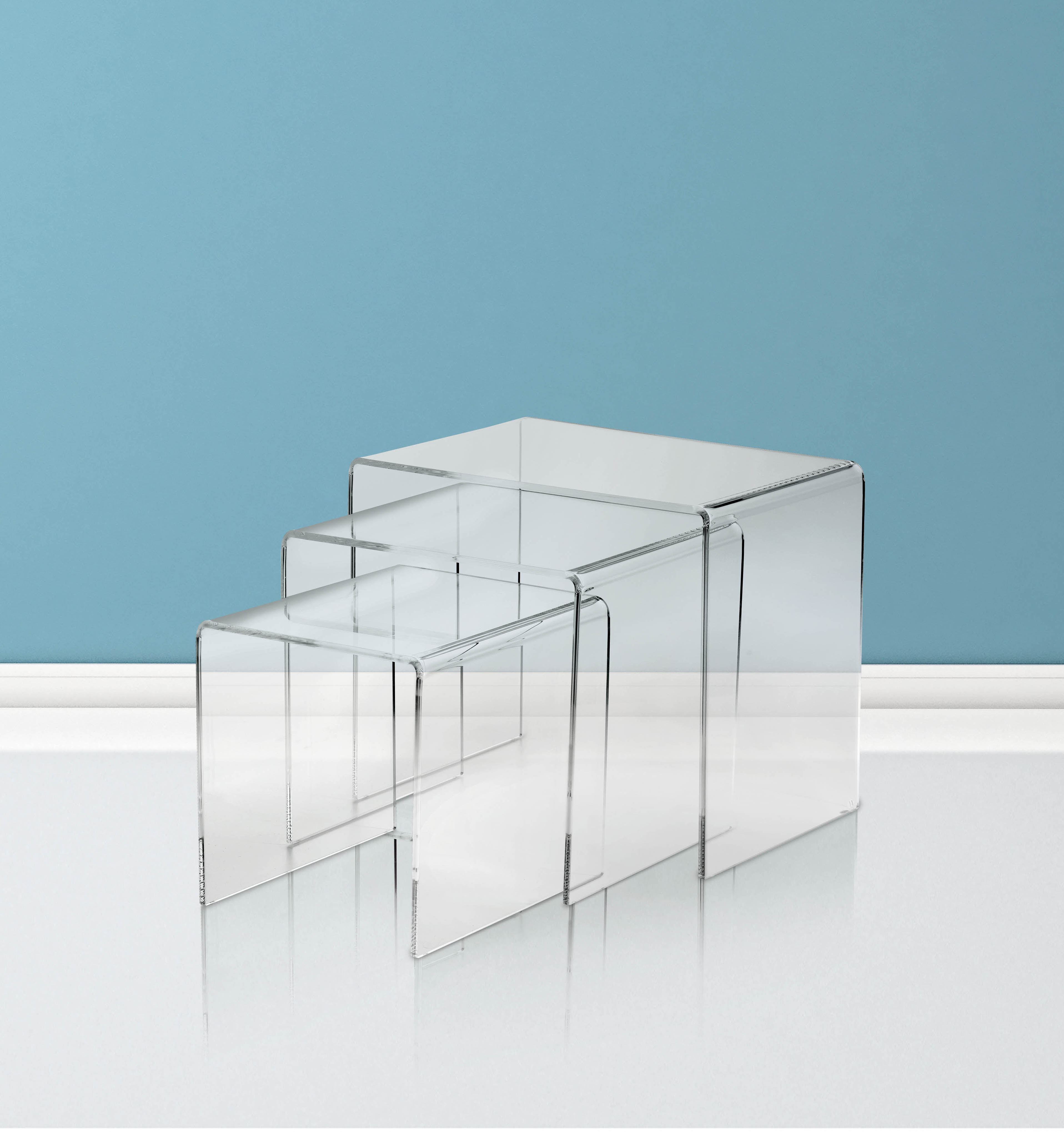Bis or Tris of stackable coffee tables in transparent acrylic crystal.