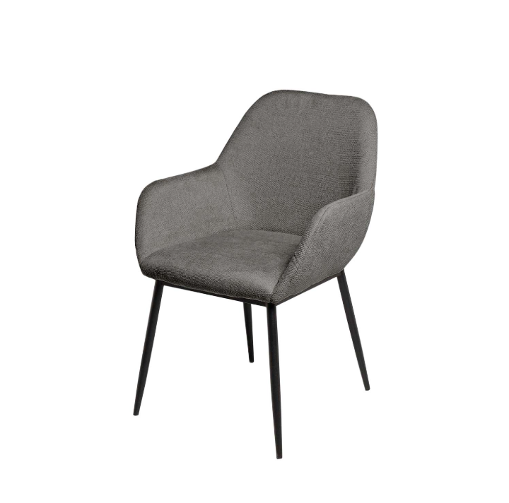 The black metal leg frame perfectly matches the fabric, creating a harmonious and sophisticated combination.