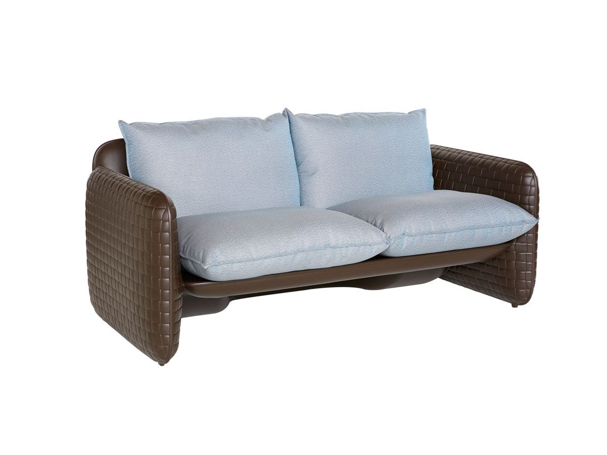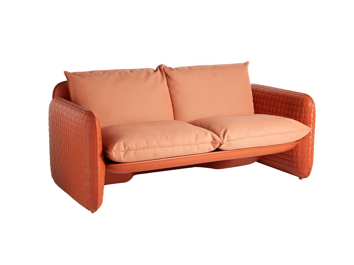 The Mara Sofa is a two seater sofa designed by Lorenza Bozzoli. Its unique texture covers the entire structure, inspired by the hand-weaving of leather. The cushions guarantee absolute comfort to the seat: the waterproof fabric makes them perfect for outdoor use as well. Mara is a collection completed by the Mara armchair and the Mara Pouf.
