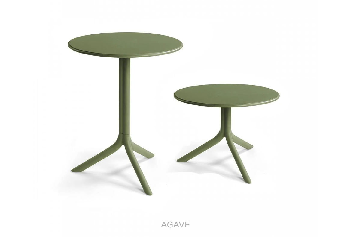 Fiberglass resin side table with round top and three-legged base, ideal for outdoor use but also perfect as a decorative element for indoors. Easy to assemble and disassemble, it is supplied with a practical kit that allows you to choose between two different heights
