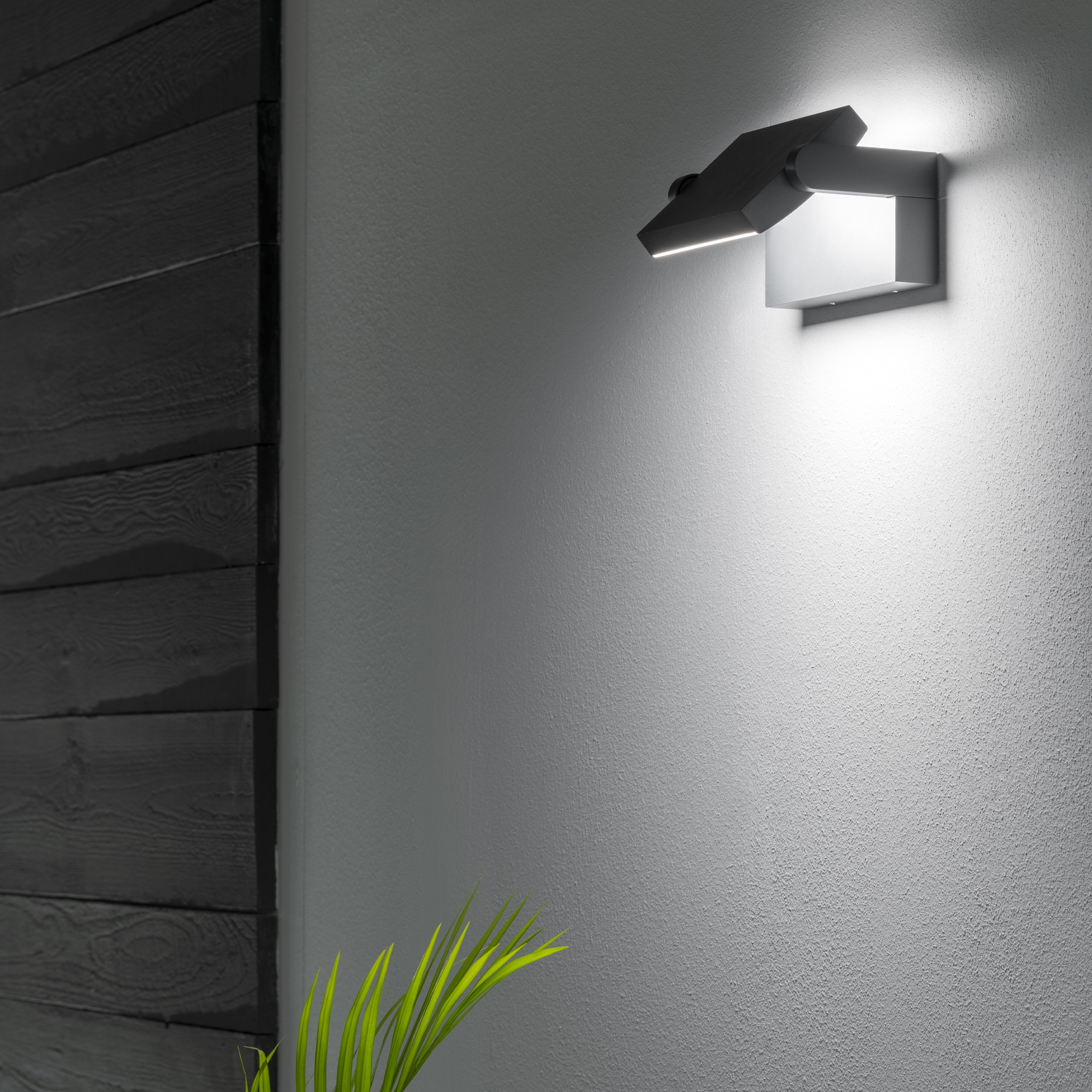 Powder-coated aluminum body. Adjustable diffuser with glossy OPAL polycarbonate screen. Available with twilight and motion sensors. Finishes: anthracite, white, gray, coffee, or black.
