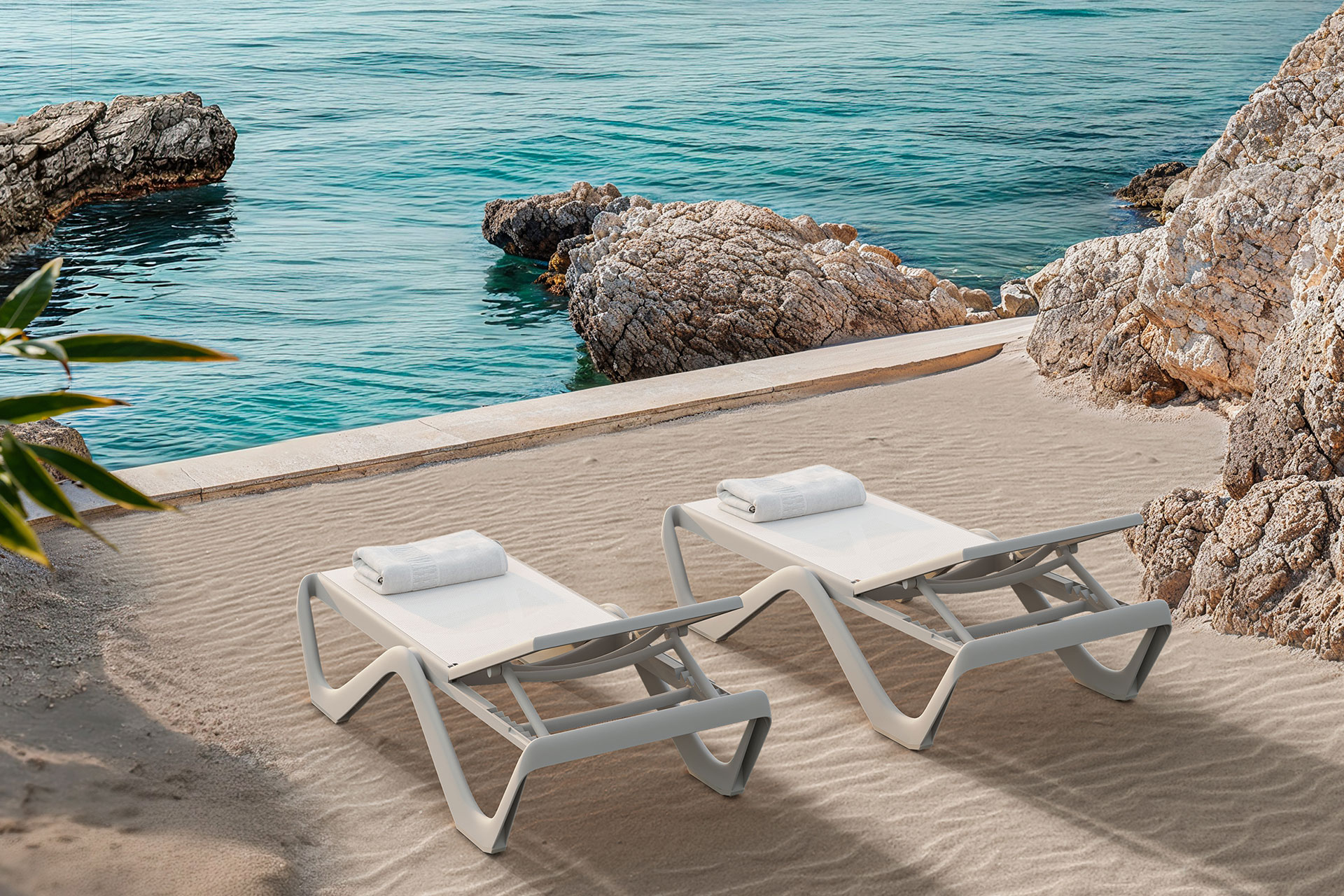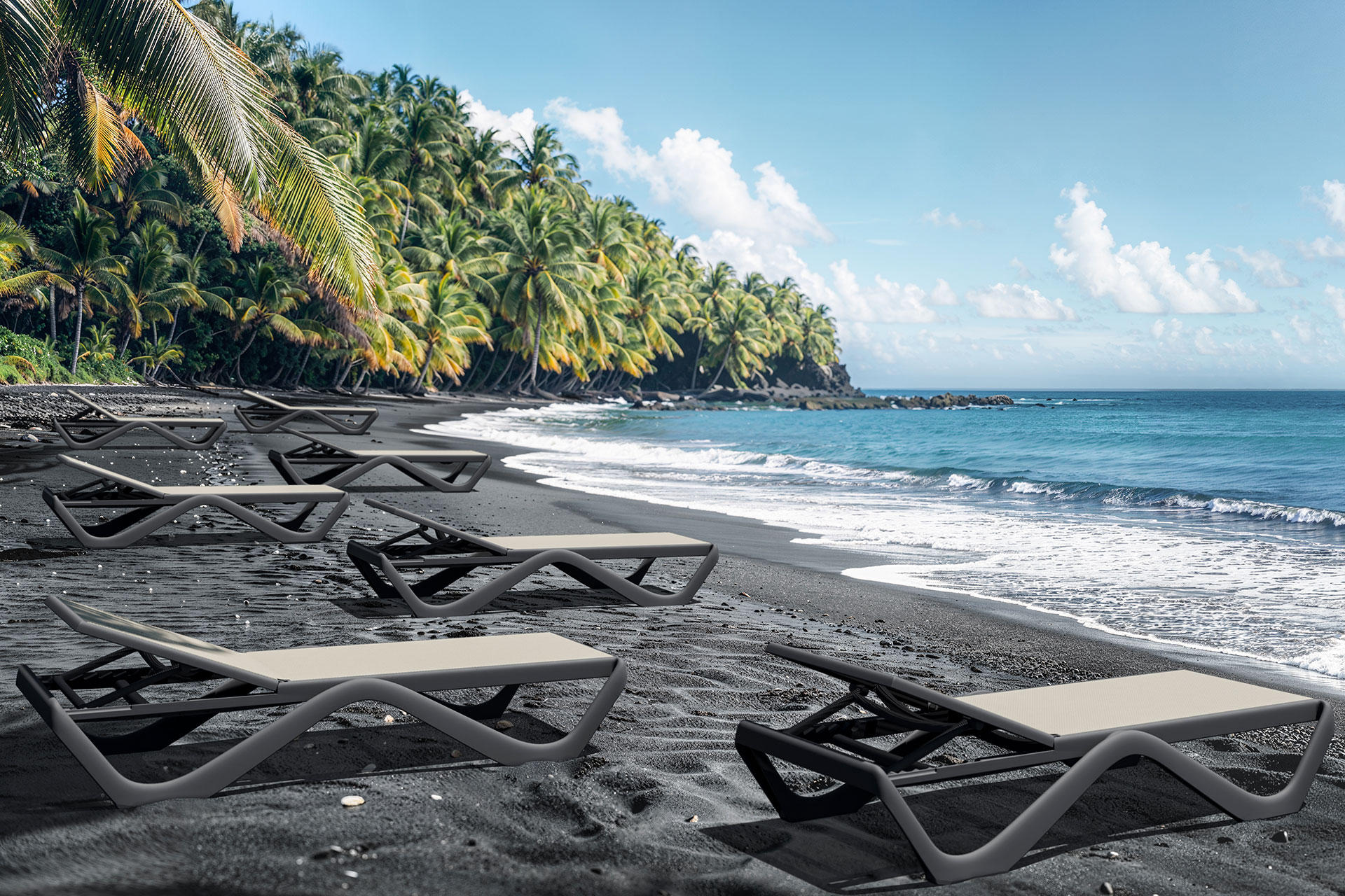 Fiberglass-injected polypropylene. Stackable. Suitable for indoor and outdoor use.