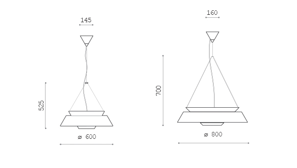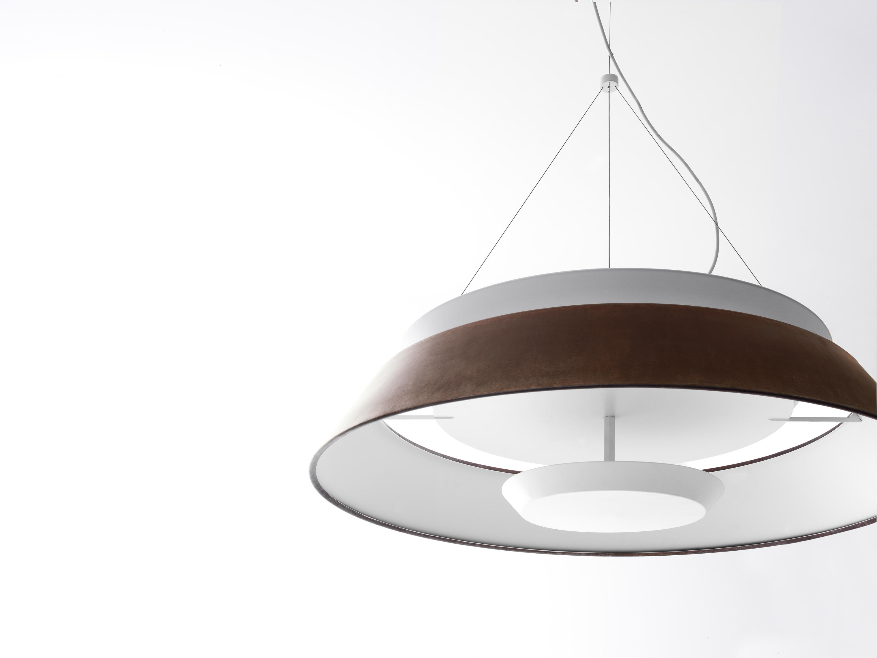 The collection includes suspension lamps available in two different diameters and available in glossy white, glossy black and corten finishes.