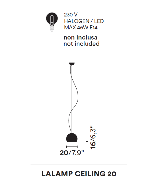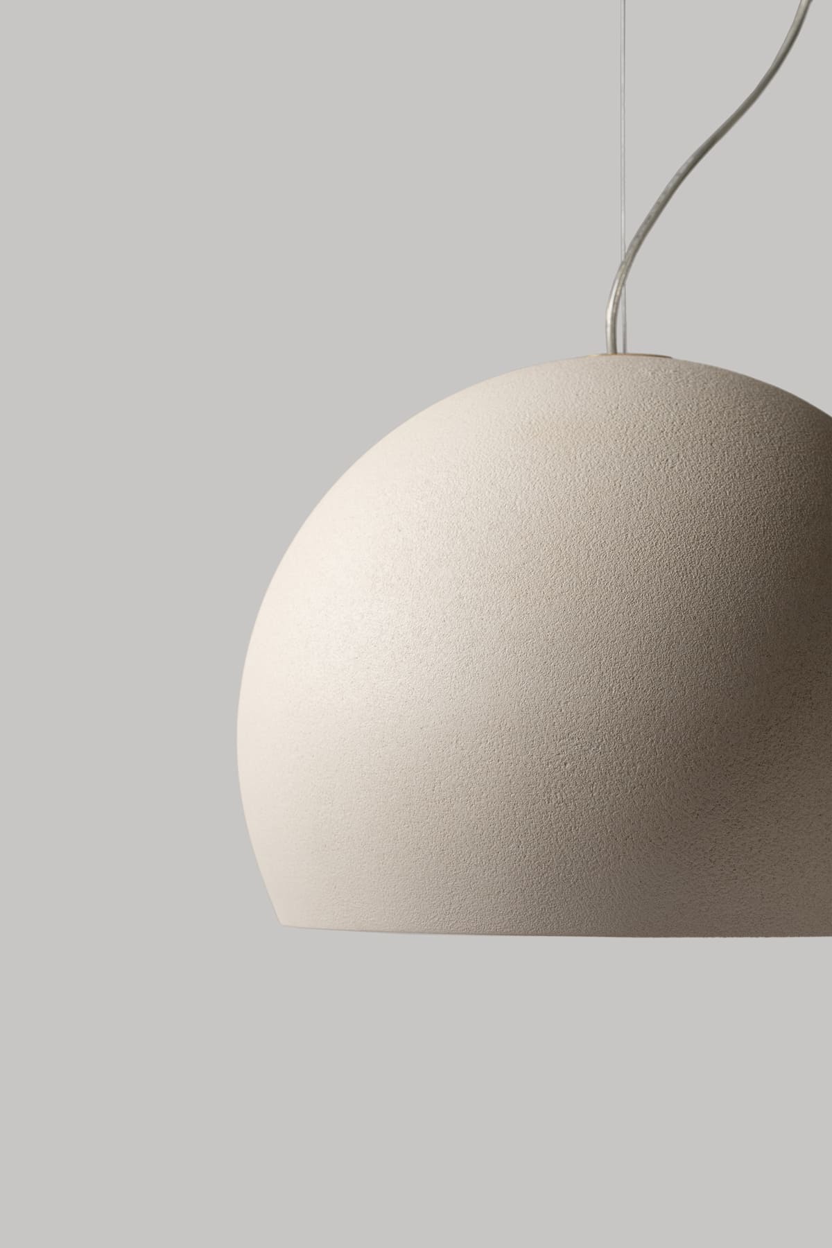 Suspended lighting fixture. Aluminum diffuser. EU wiring with 2.5m of stainless steel cable, transparent electric bipolar cable, black painted ceiling rose