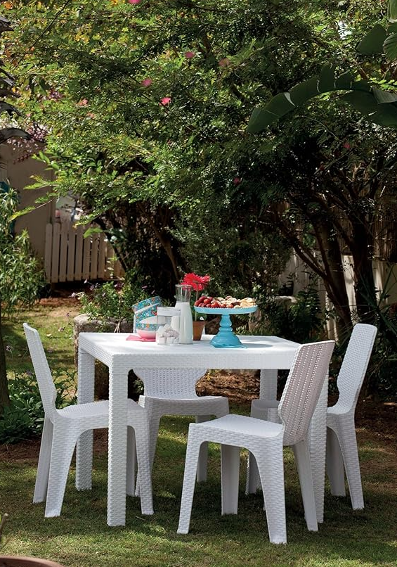 Modern design with woven finish : adds a natural and sophisticated touch to outdoor spaces, perfect for combining with rattan-effect tables.