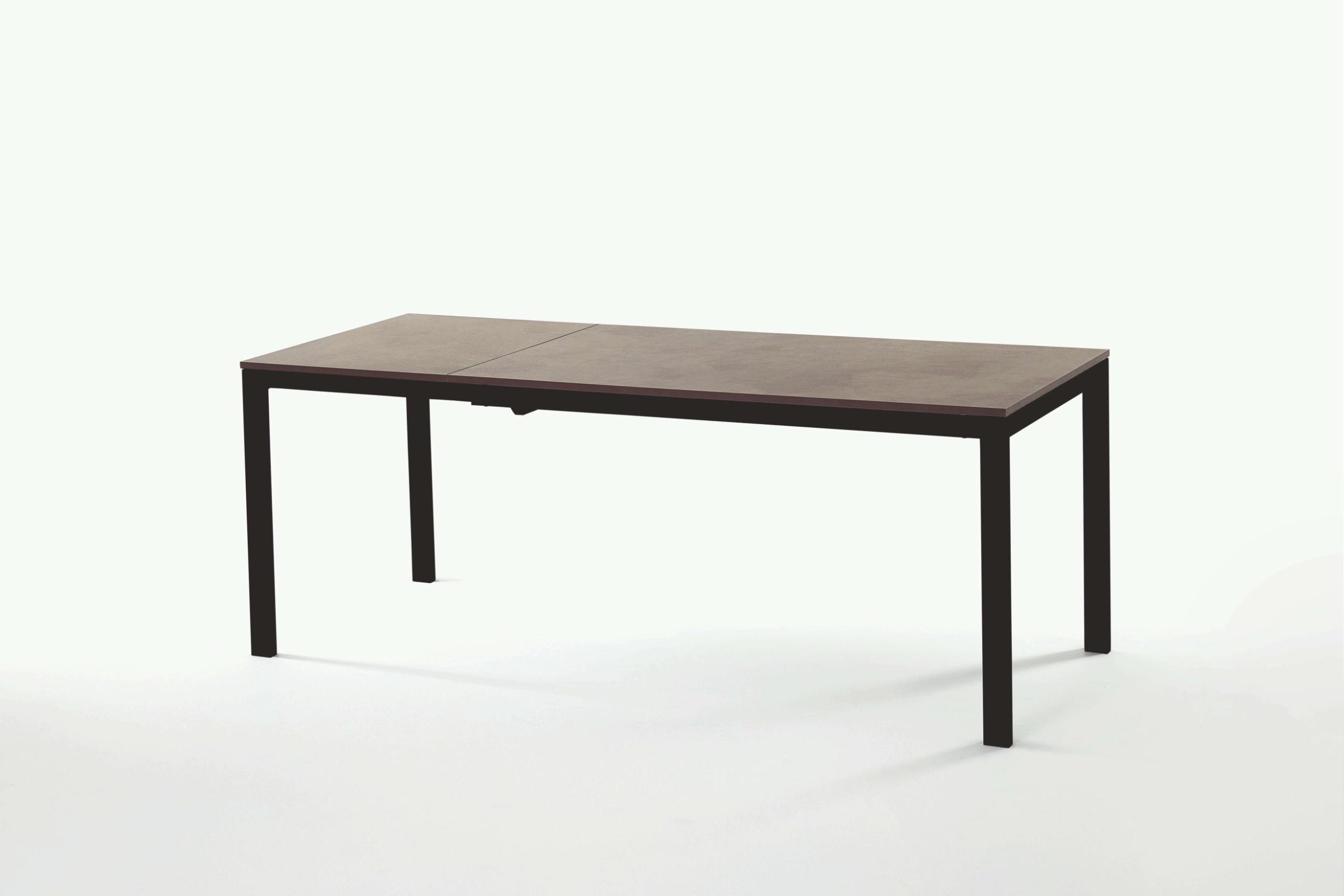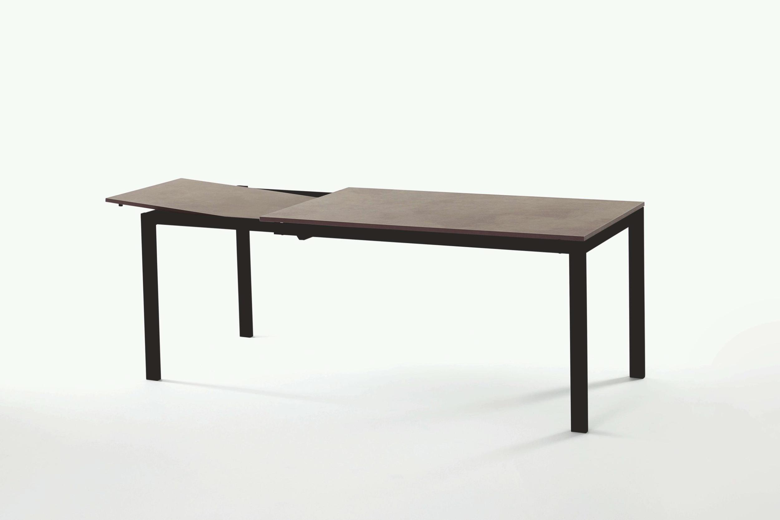 Extendable table with structure in aluminum lacquered steel M089, white M306, sand M312, mud M313, dark brown M307, anthracite M310 or black M055, the top is available in: - silk-screened glossy white crystal C106 - glossy dove gray lacquered crystal C193 - crystal glossy black lacquered C152 - glossy dark brown lacquered crystal C192 - glossy anthracite lacquered crystal C196. Dimensions: width: 100 (closed) - 140 (open) cm Depth: 70 cm Height: 75 cm Specify color by email at info@tecnoarredo3.com Increase for chromed structure G093 for information contact info@tecnoarredo3.com