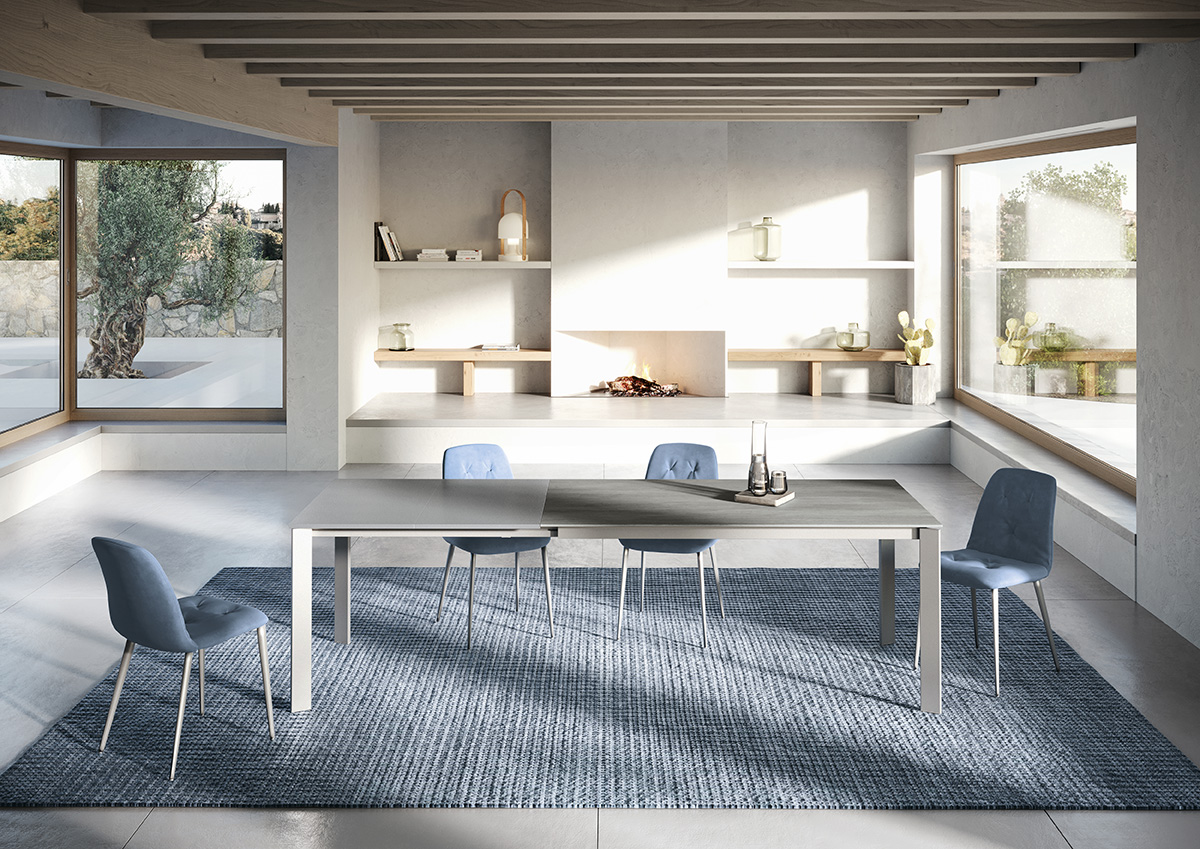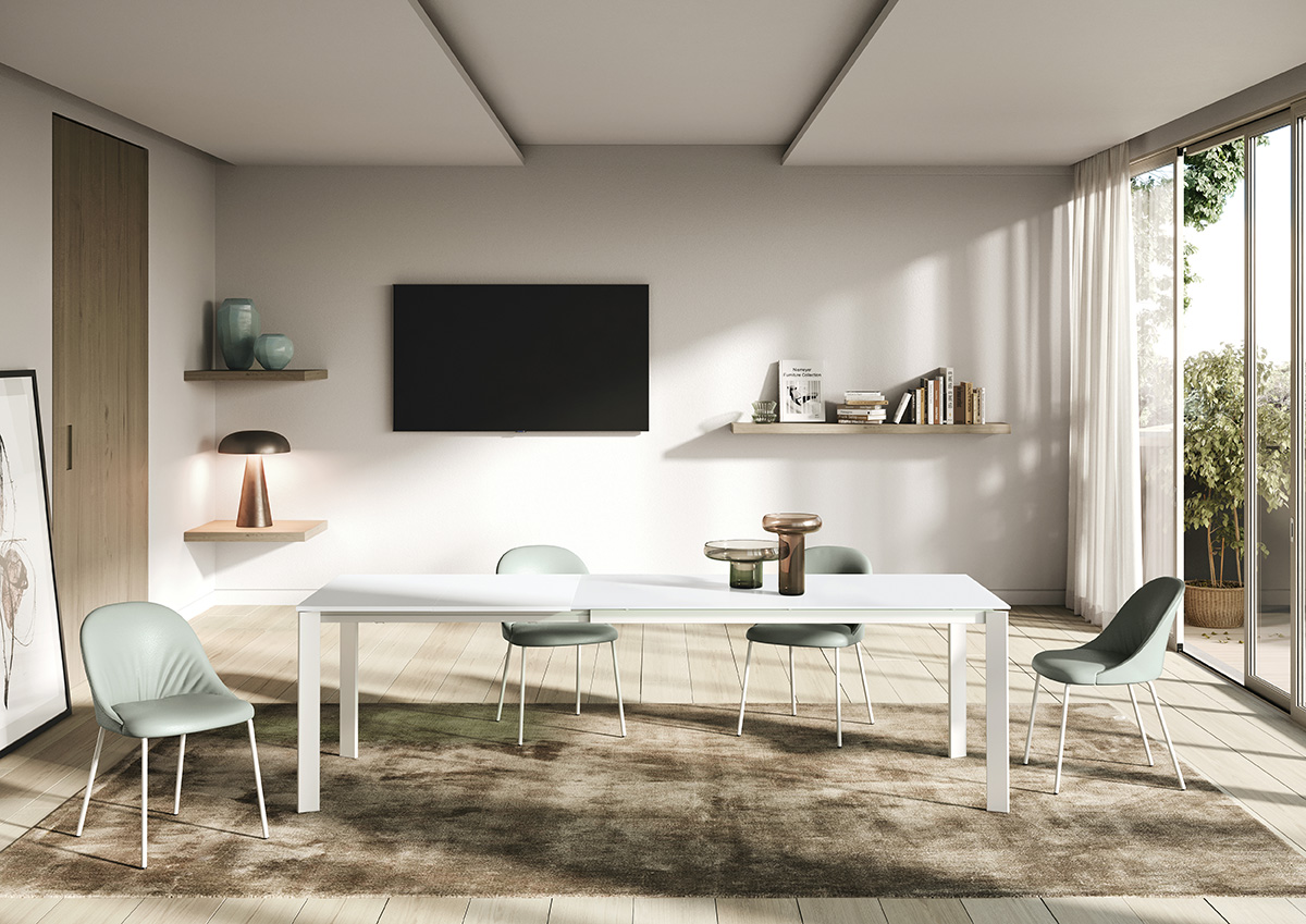 Available in various sizes and finishes , the ASTER table can be customized with glass, melamine, ceramic, or wood tops, and a sturdy painted metal frame. Its versatility makes it ideal for contemporary kitchens, dining rooms, open-plan spaces, or restaurants.