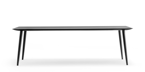 The Babila table combines the rigorous lines and natural warmth of wooden legs with an ultra-thin laminate top, supported by an extruded aluminum frame profile.