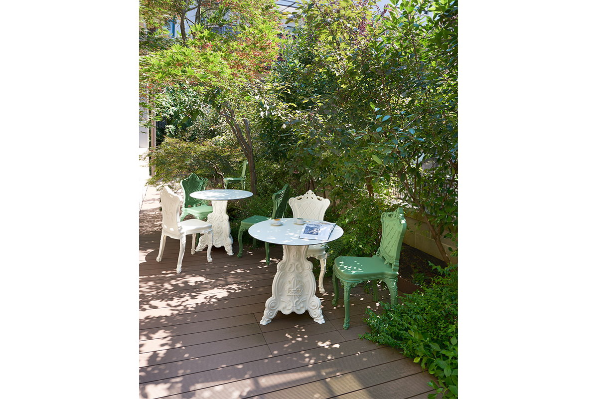 The Lord of Love is a table that is perfectly associated with the Rococo style that is part of the original Design of Love Collection product line. An ideal table to complete a modern furniture but at the same time with a touch of elegance and a vintage look. The top is in HPL.