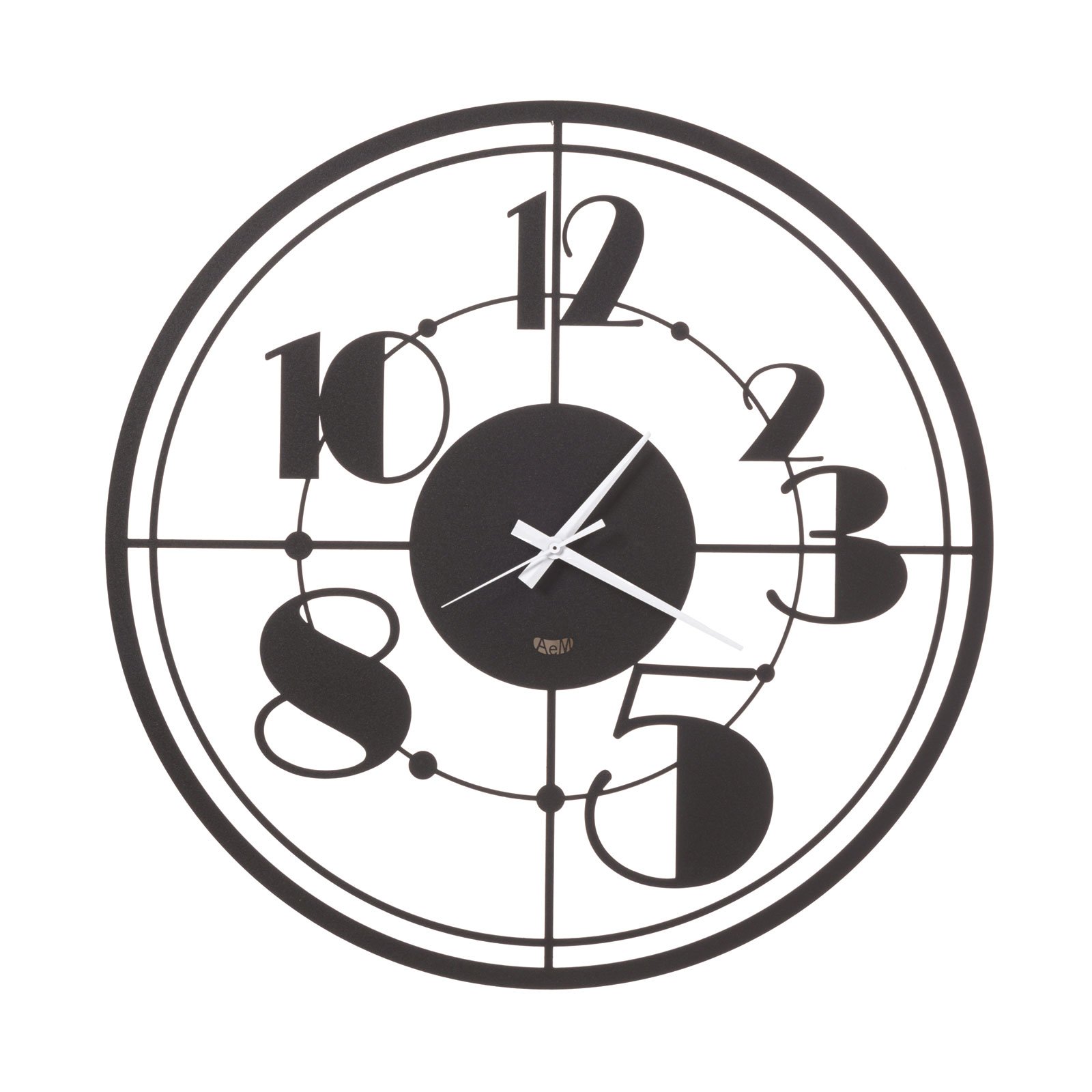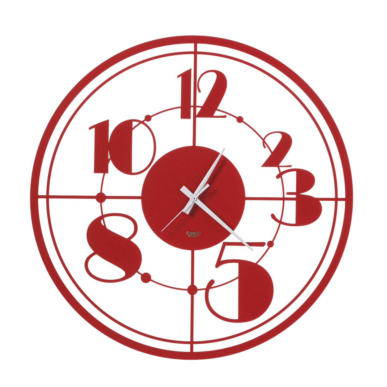 Wall clock with digits written in a retro font. Minimal design. Available in three colors.