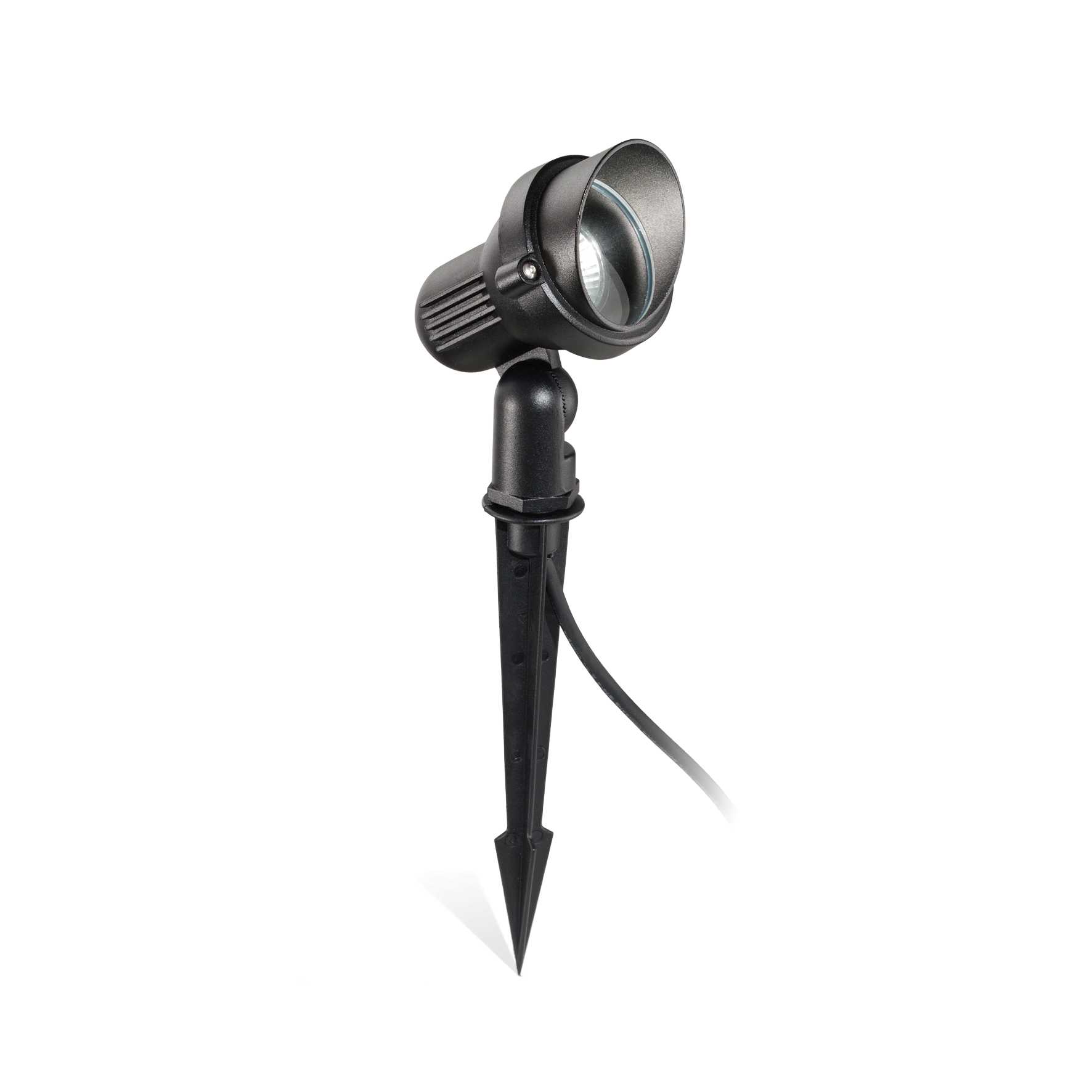 Painted cast aluminum frame. Positionable light body. Transparent Pyrex glass diffuser. Available with wall base or spear base to be buried in the ground.