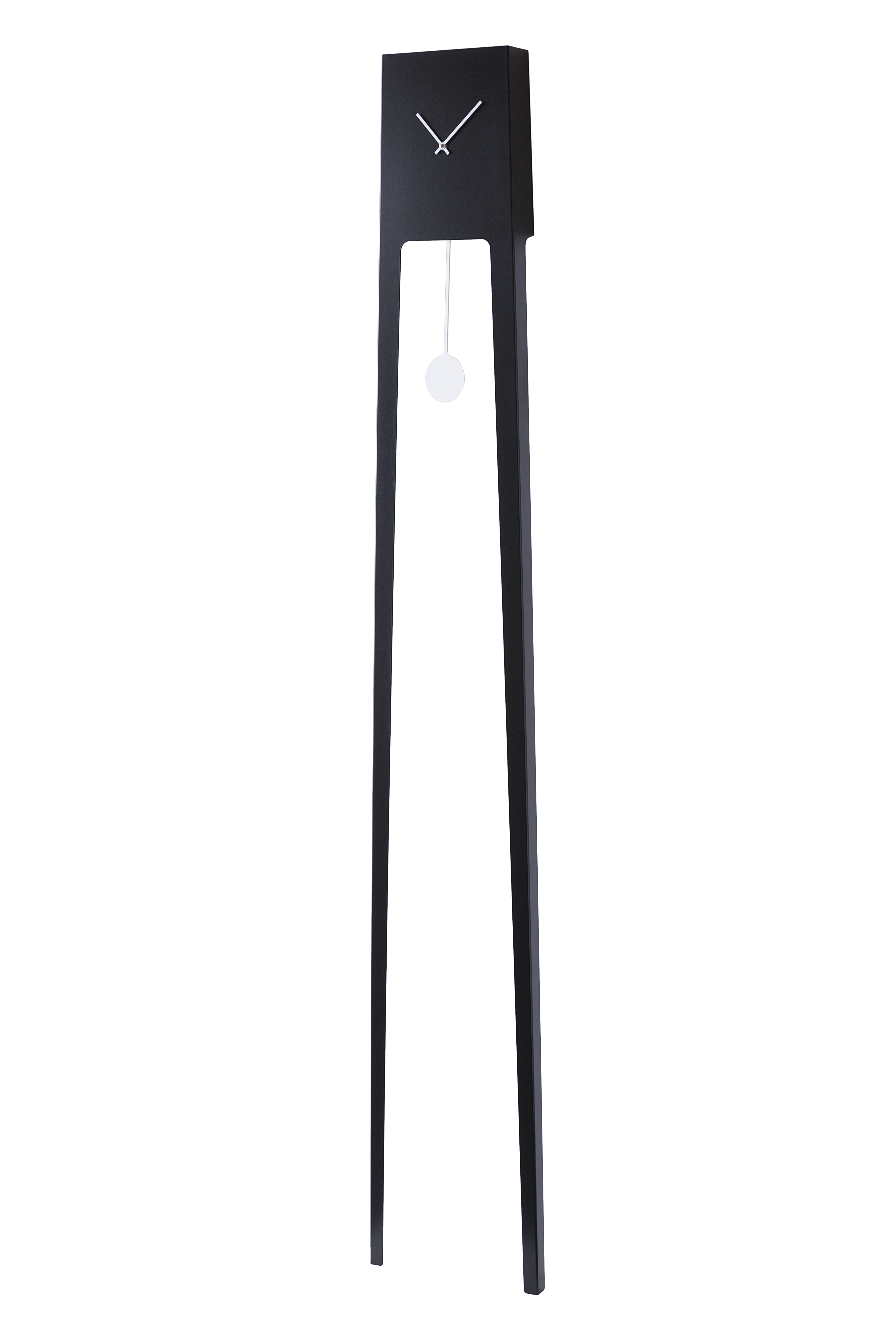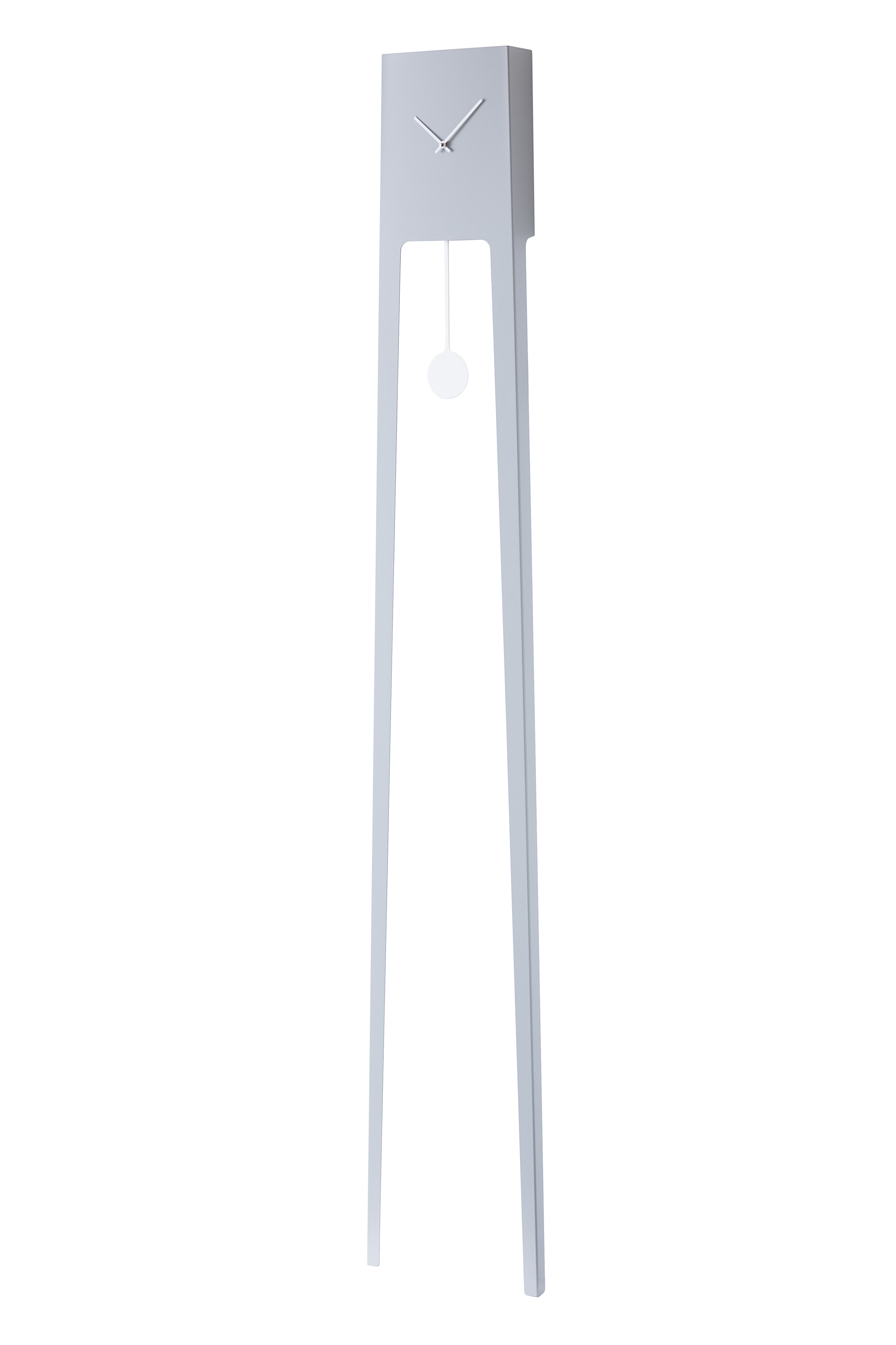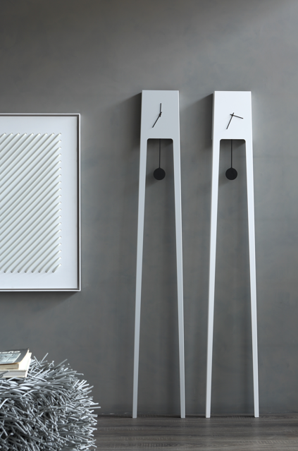 Made of powder-coated steel , Tiuku is available in various color finishes and can be placed on the wall thanks to its free-standing structure. The quartz movement guarantees precision, while the elongated shape and graphic silhouette make it perfect for enhancing high walls, entrances, living rooms and offices with a contemporary touch.