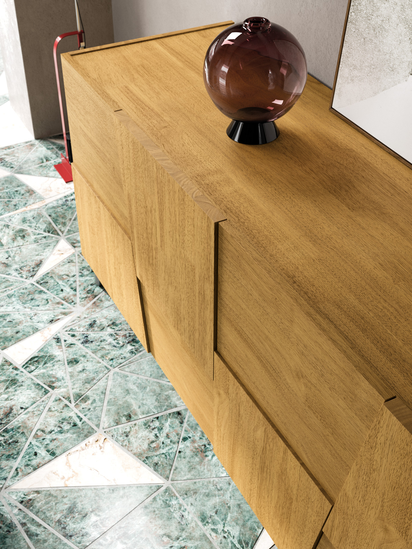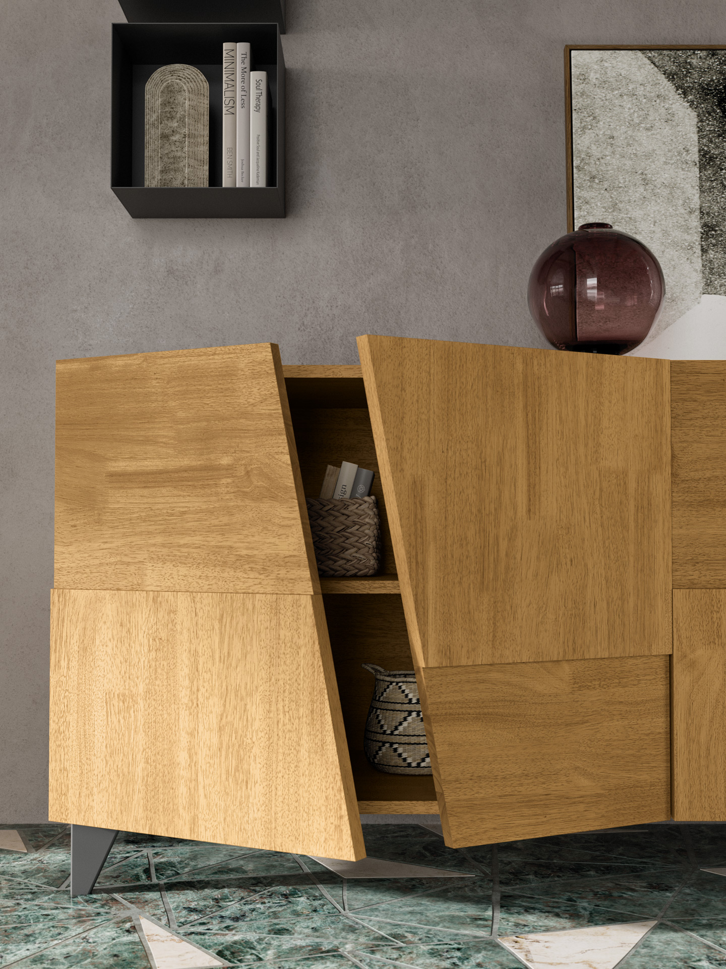 Designed to be the fulcrum of your Living Area, the TRAPEZE sideboard gives authenticity, style and originality to your home. Let yourself be conquered by its elegance and transform your environment with a timeless piece of design.