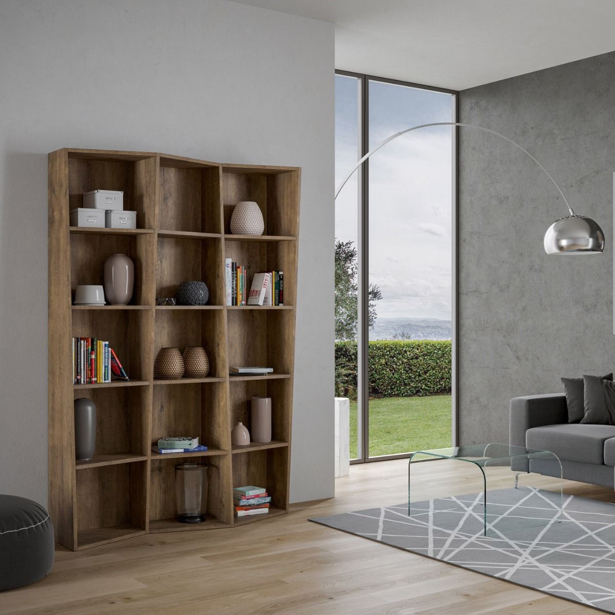 The TREK bookcase is a bookcase made up of trapezoidal panels, which make its design innovative and refined at the same time.