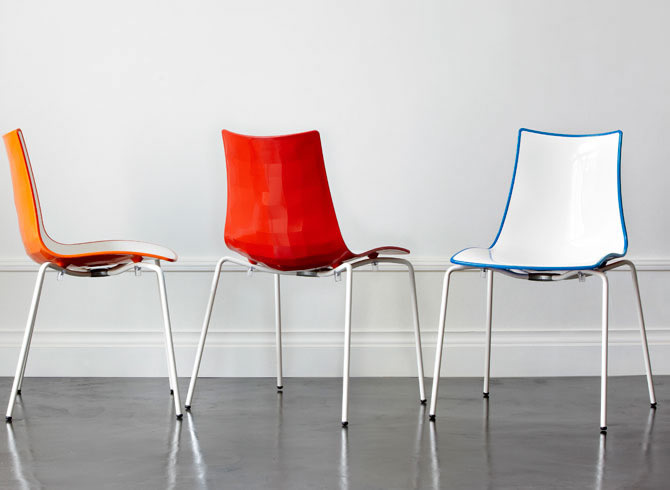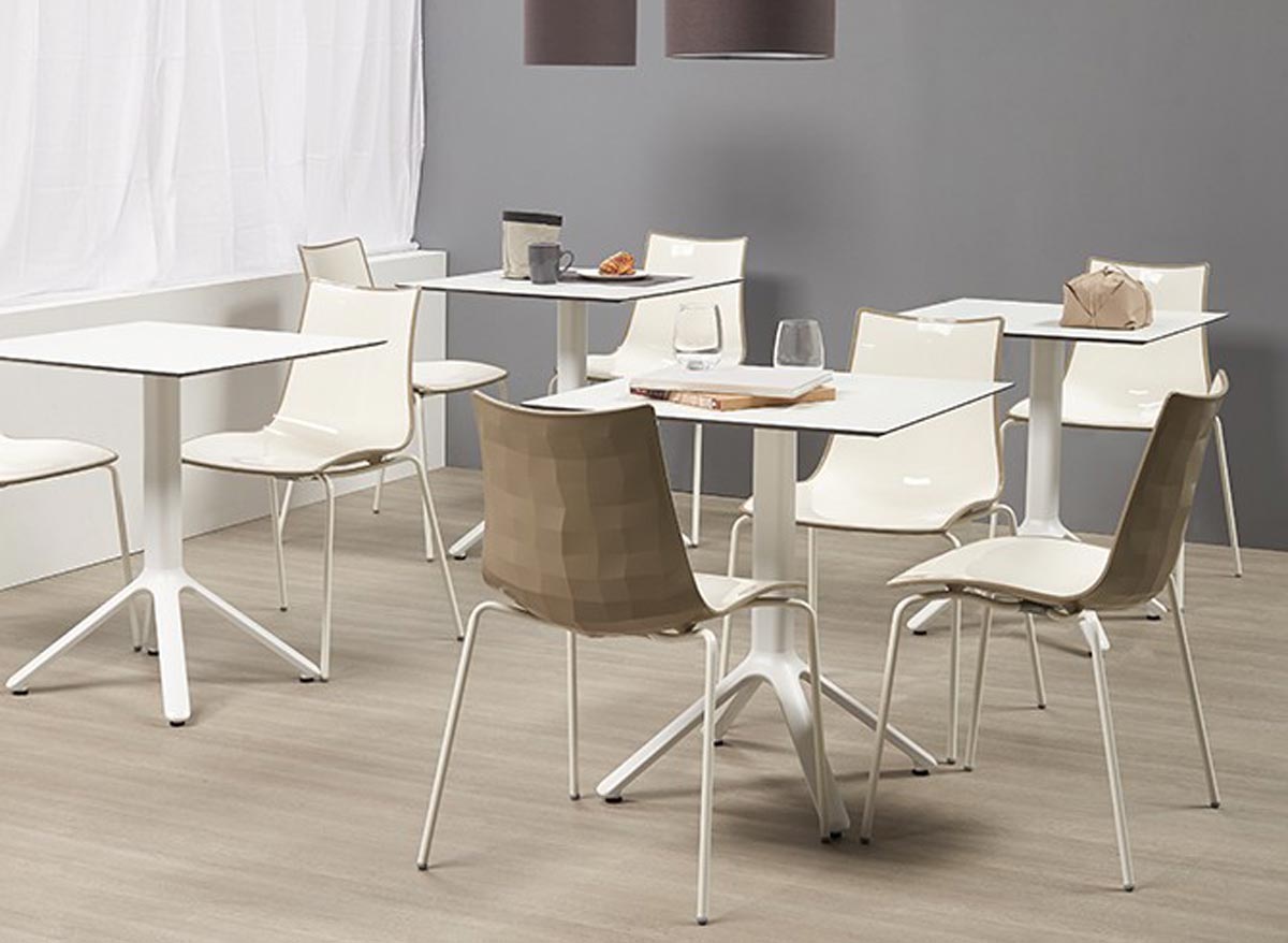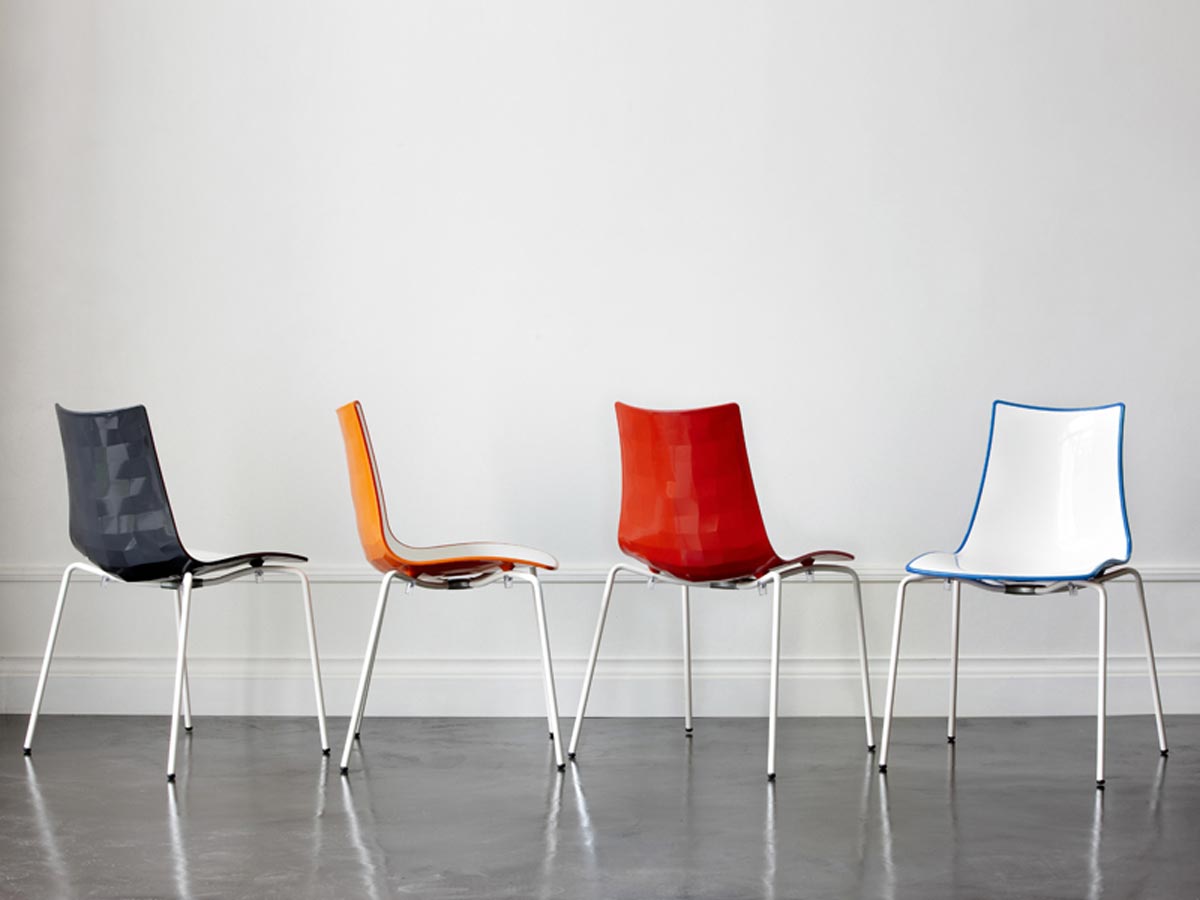 The structure is available in two variants: a version with 4 legs in chromed steel tube, ideal for indoor use, and another with legs in painted steel tube, perfect for withstanding both indoor and outdoor use.