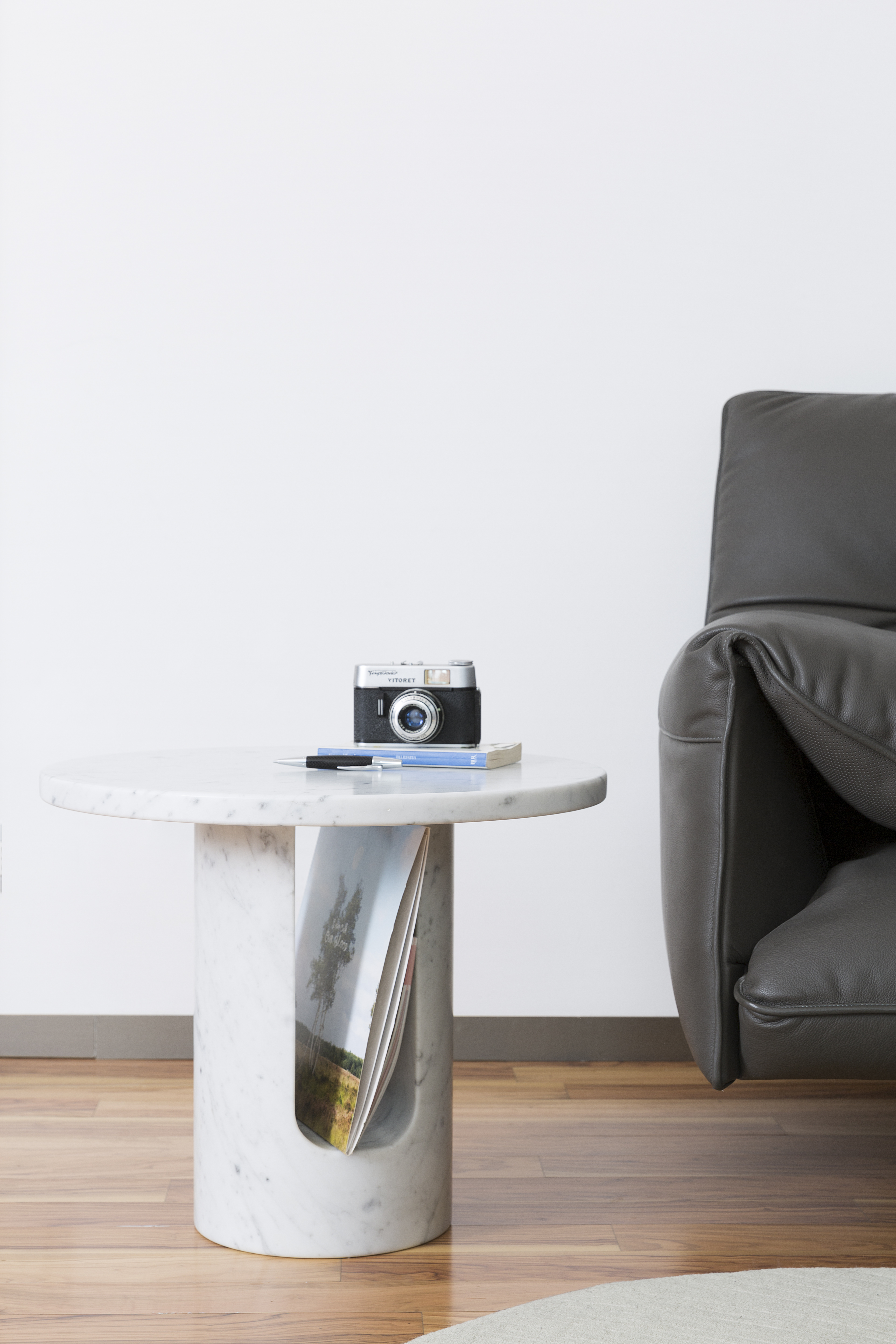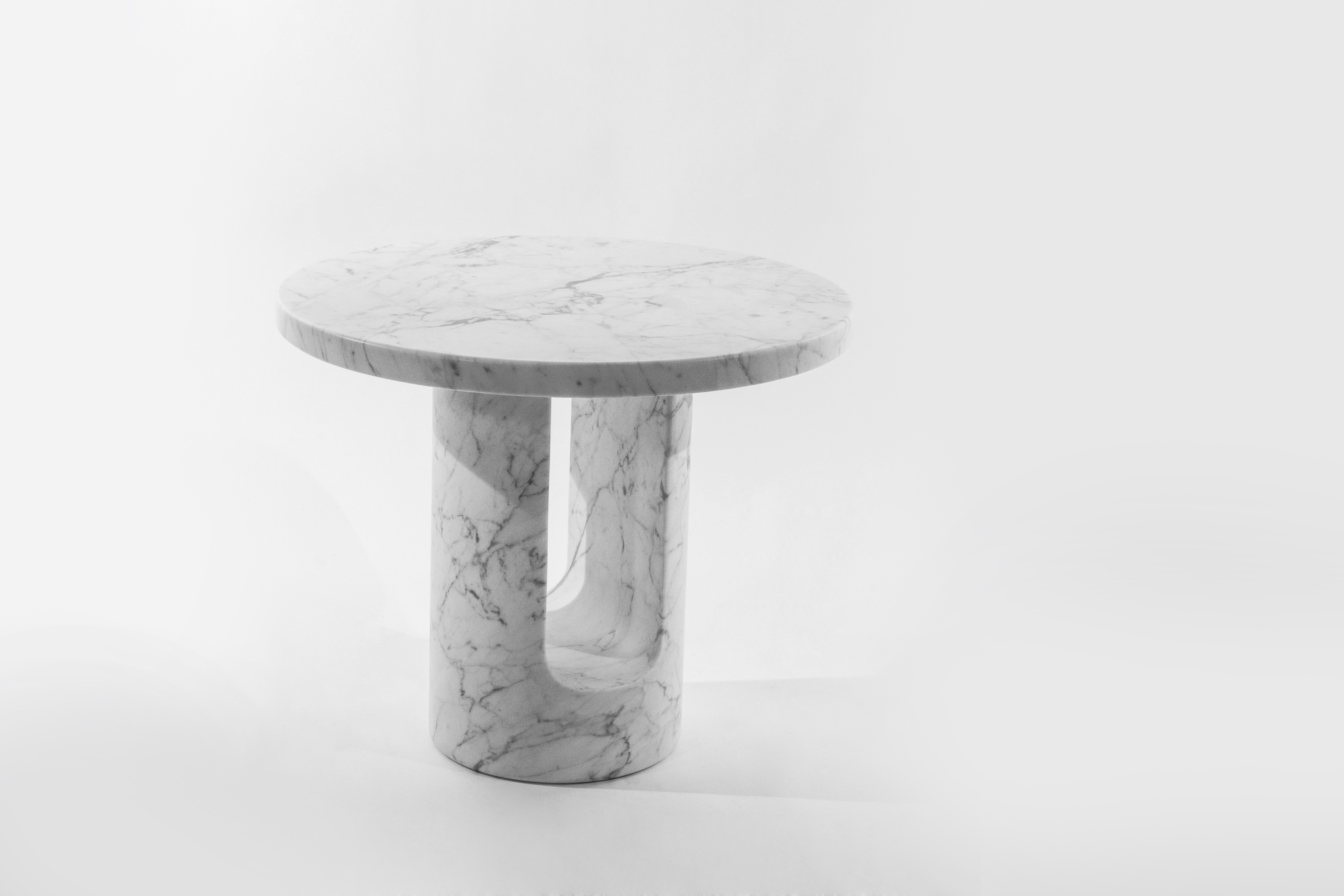 U-turn is a single-material sculptural table. It is a tribute to the noble material.