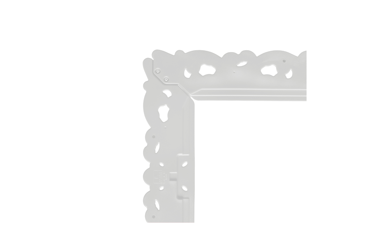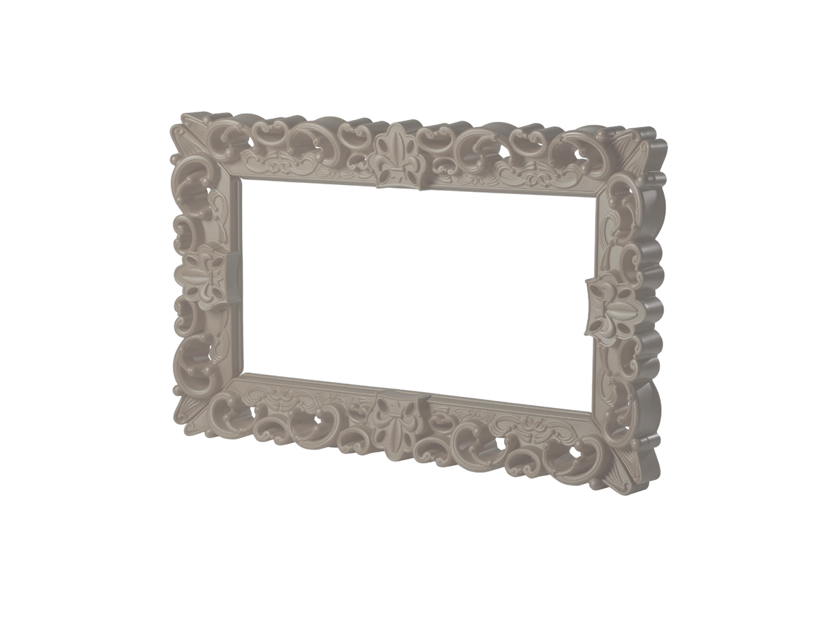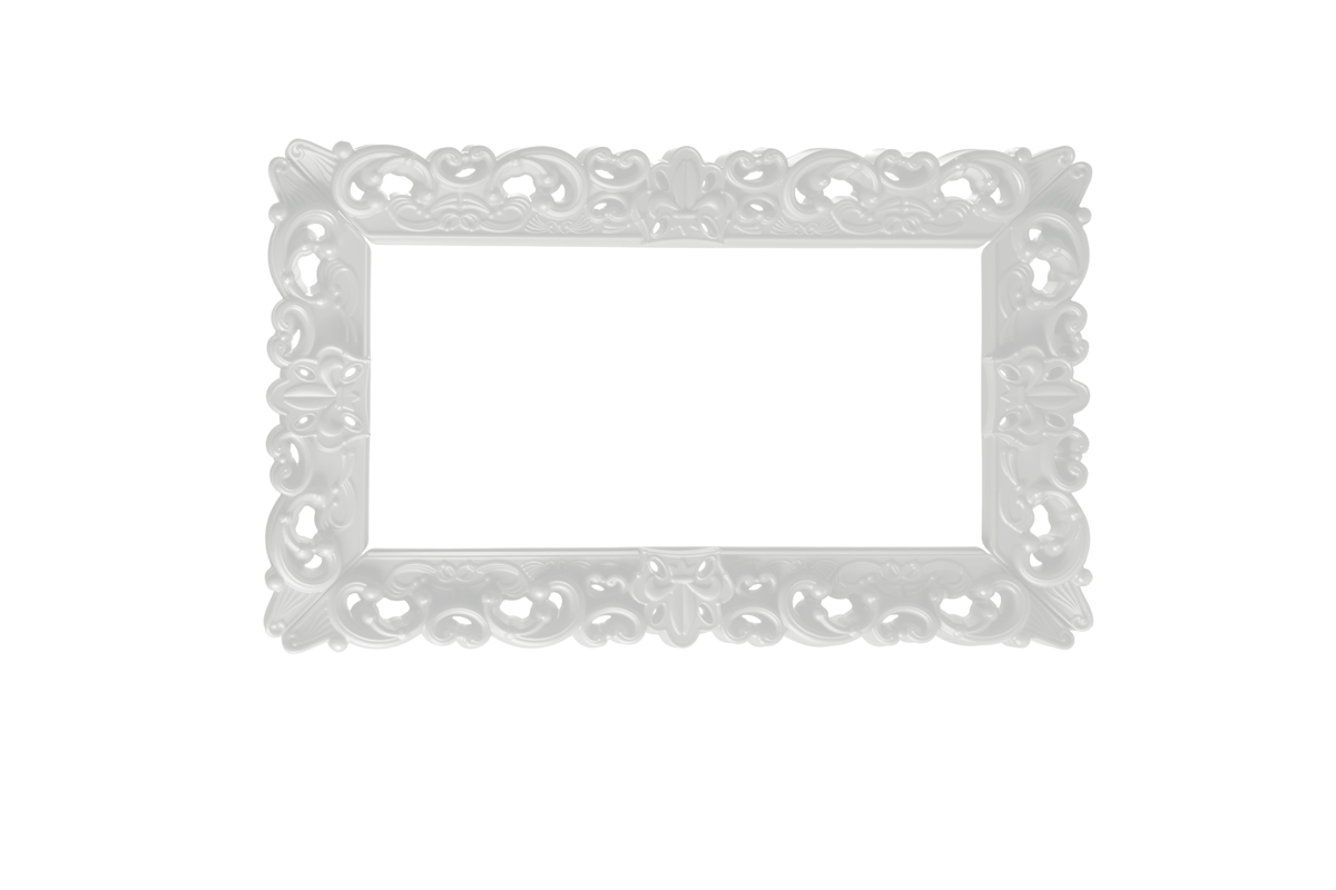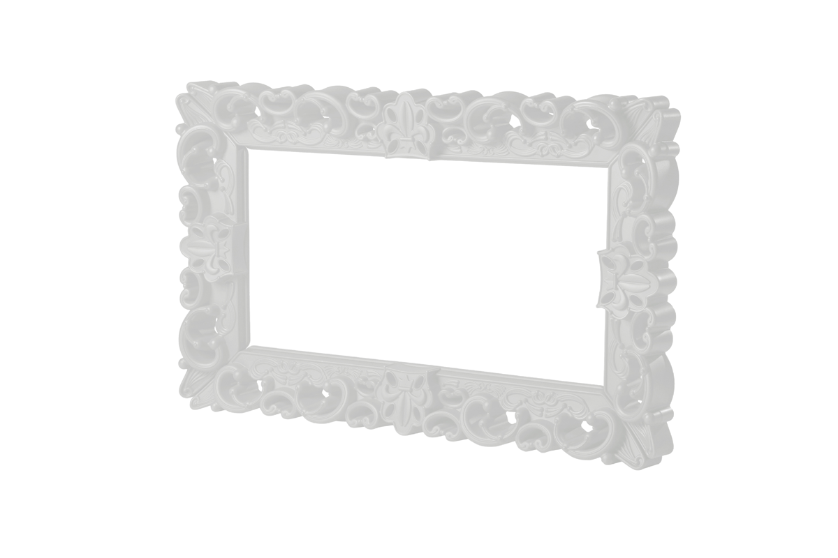 The Frame of Love - M is a very unique item with its remarkable dimensions and intricate rococo-style details, which undoubtedly cannot go unnoticed. The imposing size of the sides 162 cm by 99 cm, allows the Frame of Love, with its majesty to become the protagonist of the large volumes of halls, exhibitions, and galleries, integrating into the philosophy of macrodesign recently presented by SLIDE.