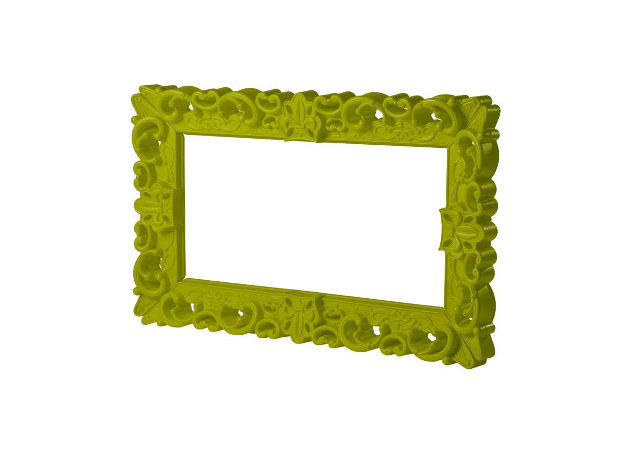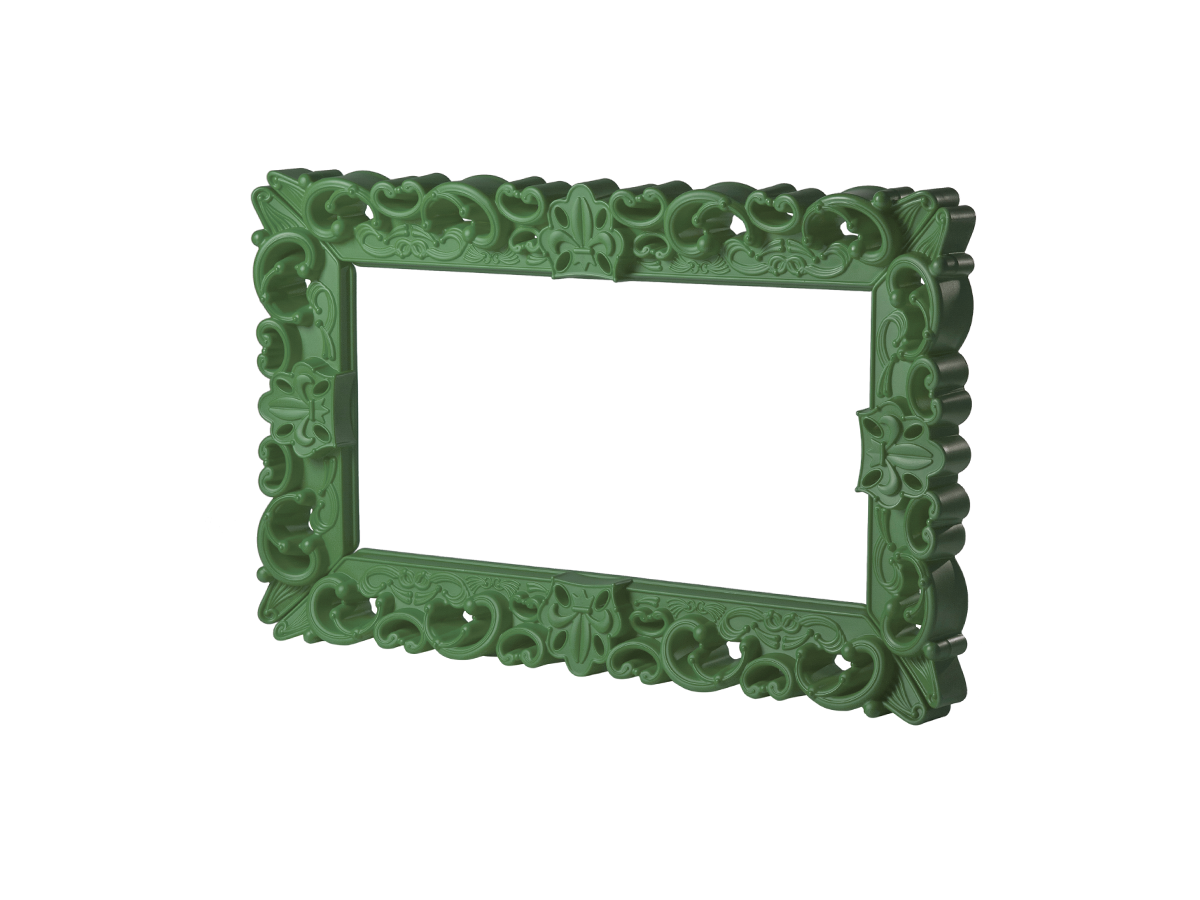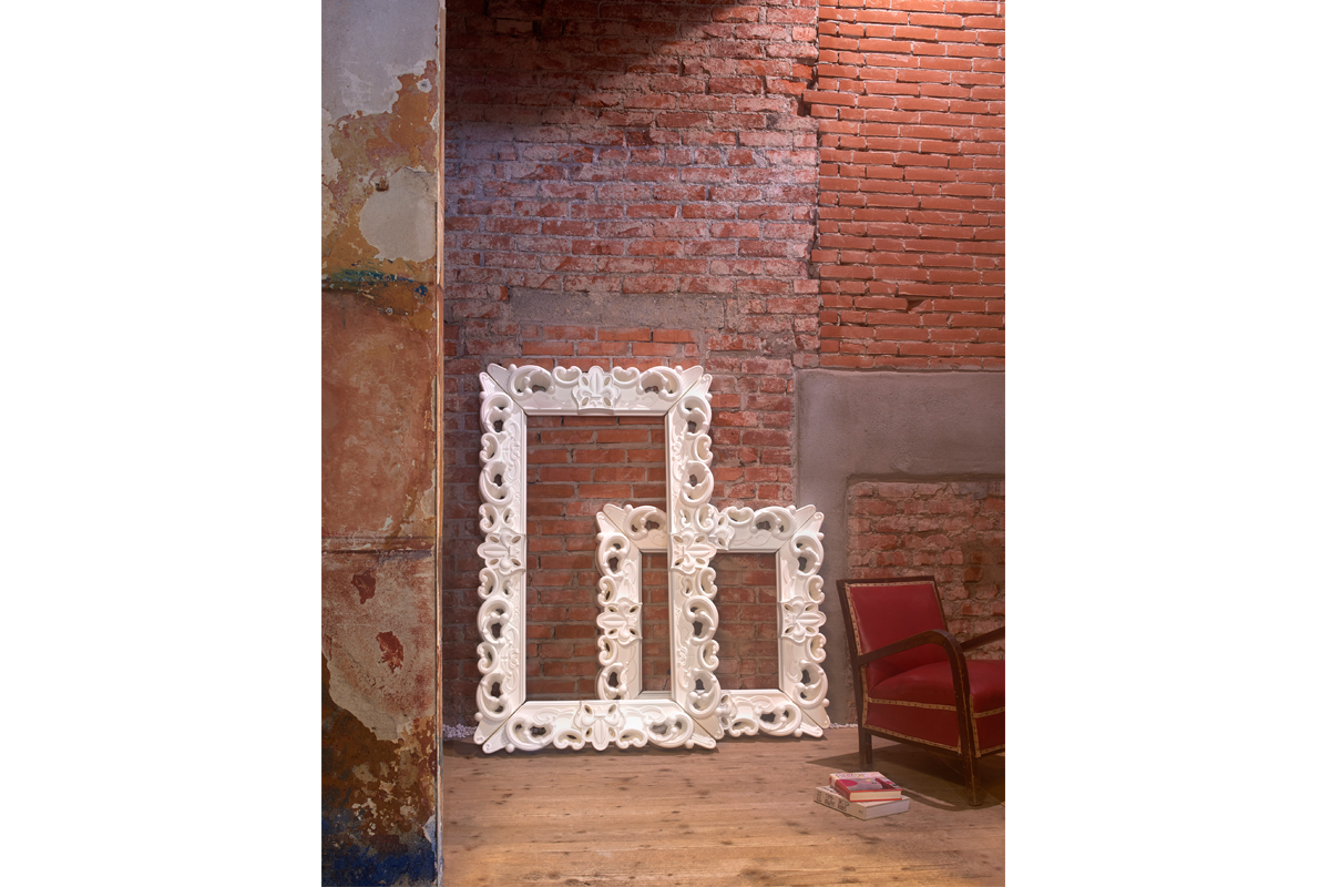 The Frame of Love - M is a very unique item with its remarkable dimensions and intricate rococo-style details, which undoubtedly cannot go unnoticed. The imposing size of the sides 162 cm by 99 cm, allows the Frame of Love, with its majesty to become the protagonist of the large volumes of halls, exhibitions, and galleries, integrating into the philosophy of macrodesign recently presented by SLIDE.
