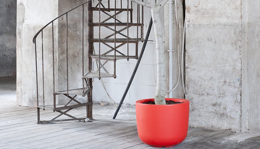 Outdoor vases of archaic inspiration, such as bowls carved in wood. Pure lines, for garden pots with a simple, discreet design, which already has the classic scent.