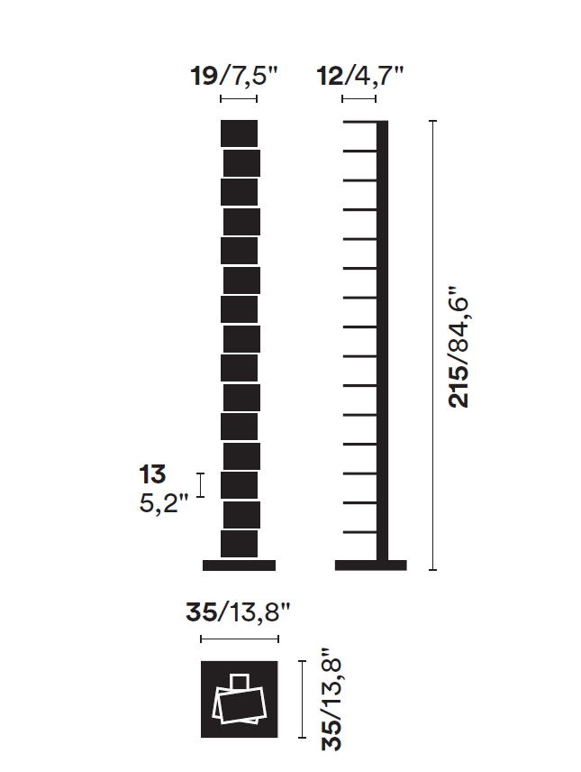 Dimensions: h215 base 35x35, about 95 volumes.