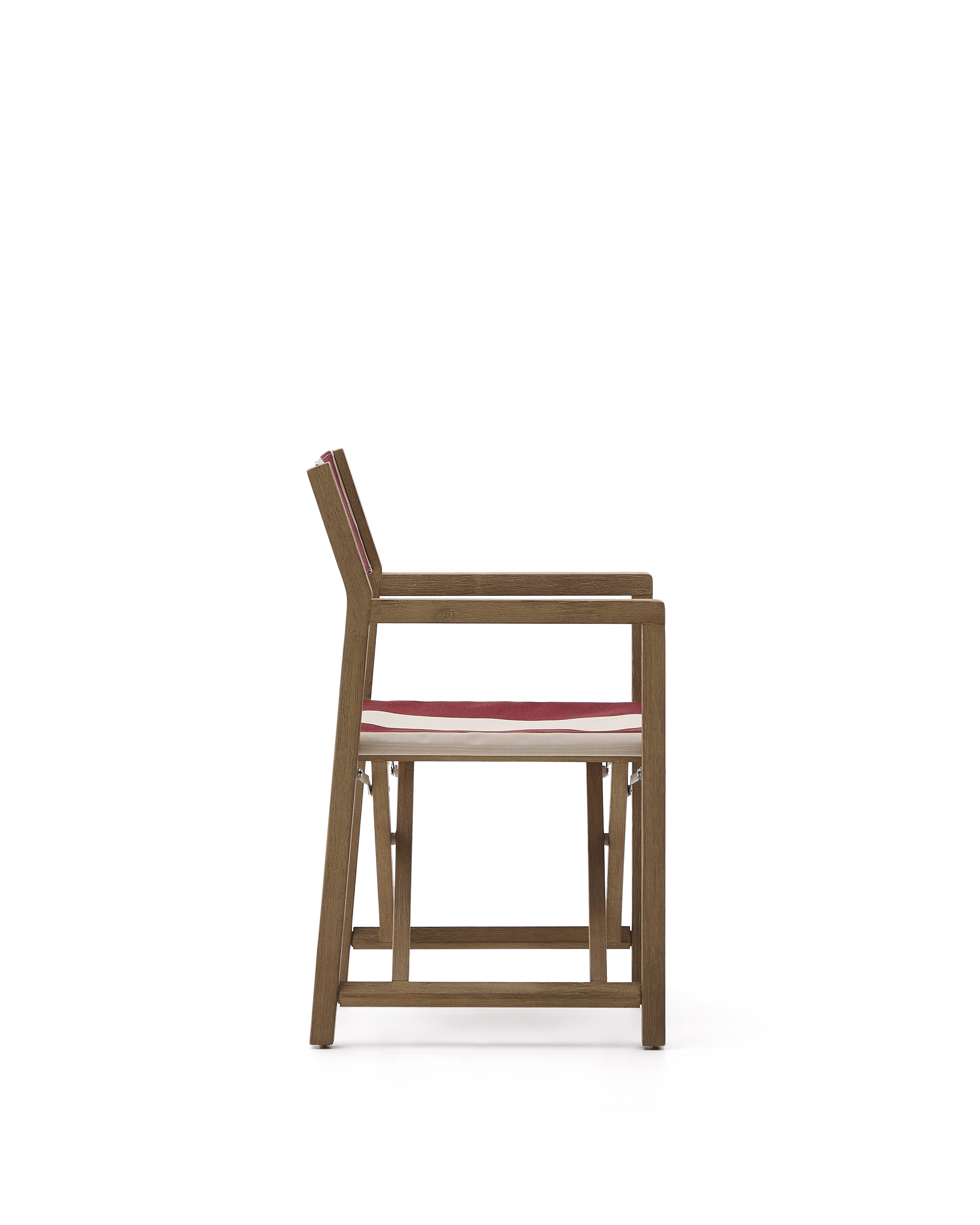Vilara folding outdoor chair with burgundy and beige stripes made of solid FSC 100% acacia wood.