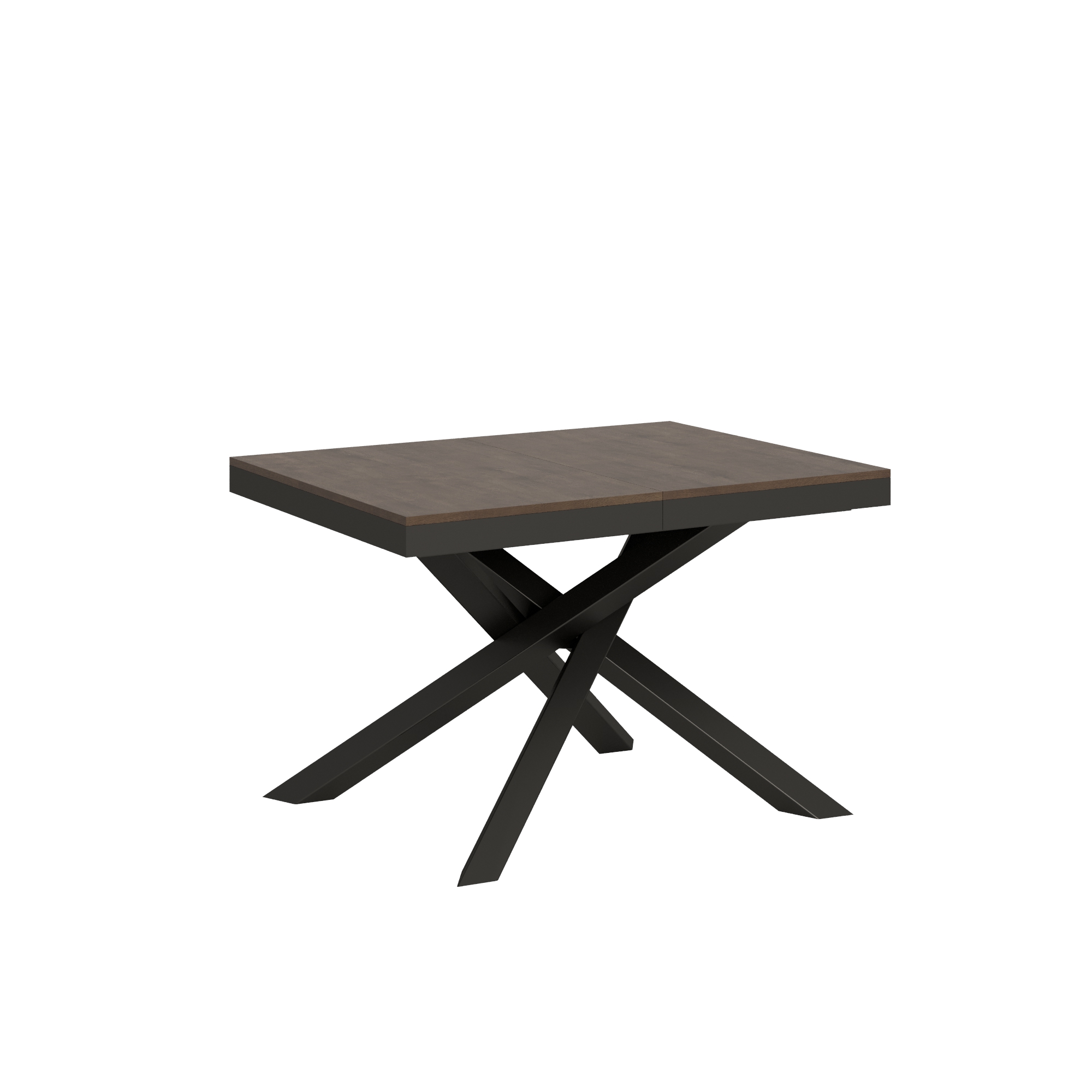 Extendable table Volantis Evolution 120 modern and sophisticated in design, fits perfectly in any furnishing style and it proves to be the perfect choice both as a dining table and as a design furnishing piece for the living room, where you can welcome your guests in style. The extendable table Volantis Evolution can extend progressively up to 224 cm, and is able to accommodate up to 10 people. Made of melamine boards, iron legs and frame. The extending mechanism with aluminium telescopic rails makes the table steady and sturdy even when fully extended, without the need of external supports. When not used, the extension leaves can be stored beneath the tabletop, ready to use. Itamoby product Made in Italy Sizes: Closed table: L.120 D.90 H.77 cm Length with 1 extension leaf: 172 cm Length with 2 extension leaves: 224 cm