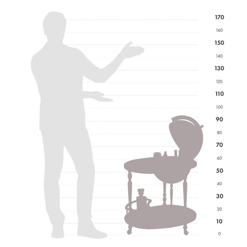 The colors of the map match perfectly with those of the woods of the structure, recalling (as the name of the globe itself suggests) the motifs and decorations of ancient Greece . The large upper tray , in addition to the spacious drinks compartment inside the globe itself, provides an excellent space to prepare your best drinks for guests or to store bar accessories, carafes, glasses and your favorite bottles of wine and spirits .
