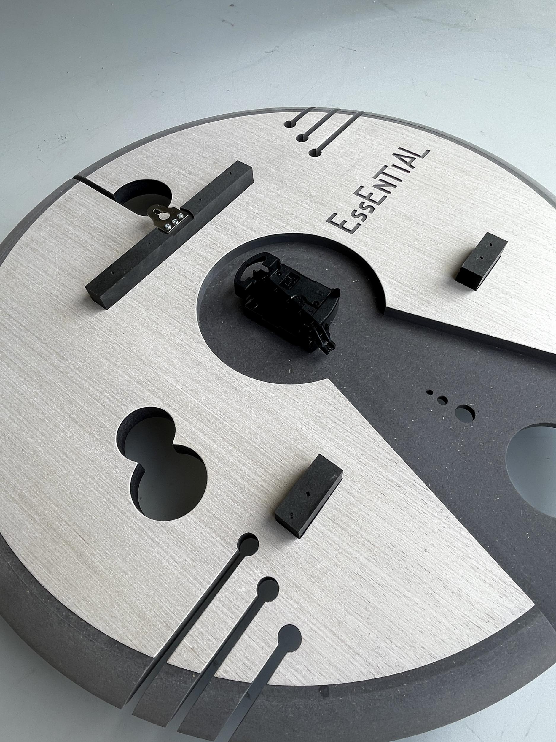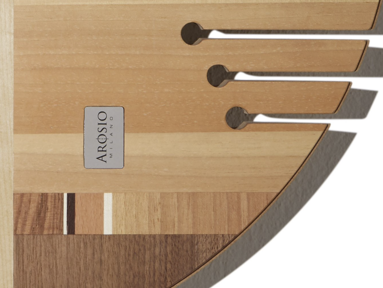 The external surface is inlaid in various precious essences, such as maple, national walnut, chestnut, Canaletto walnut. The surface finish is natural matte. The internal structure is in wood pulp.