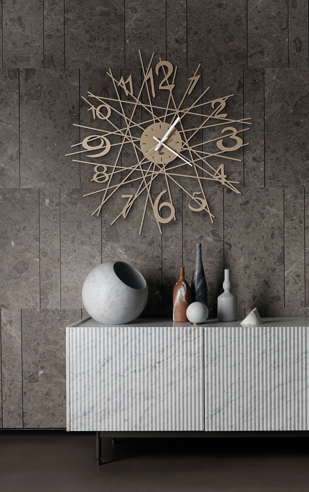 Clearly visible numbers, simple but effective dial, linear elements that form the glue: all this is what makes up the Zig Zag design wall clock!